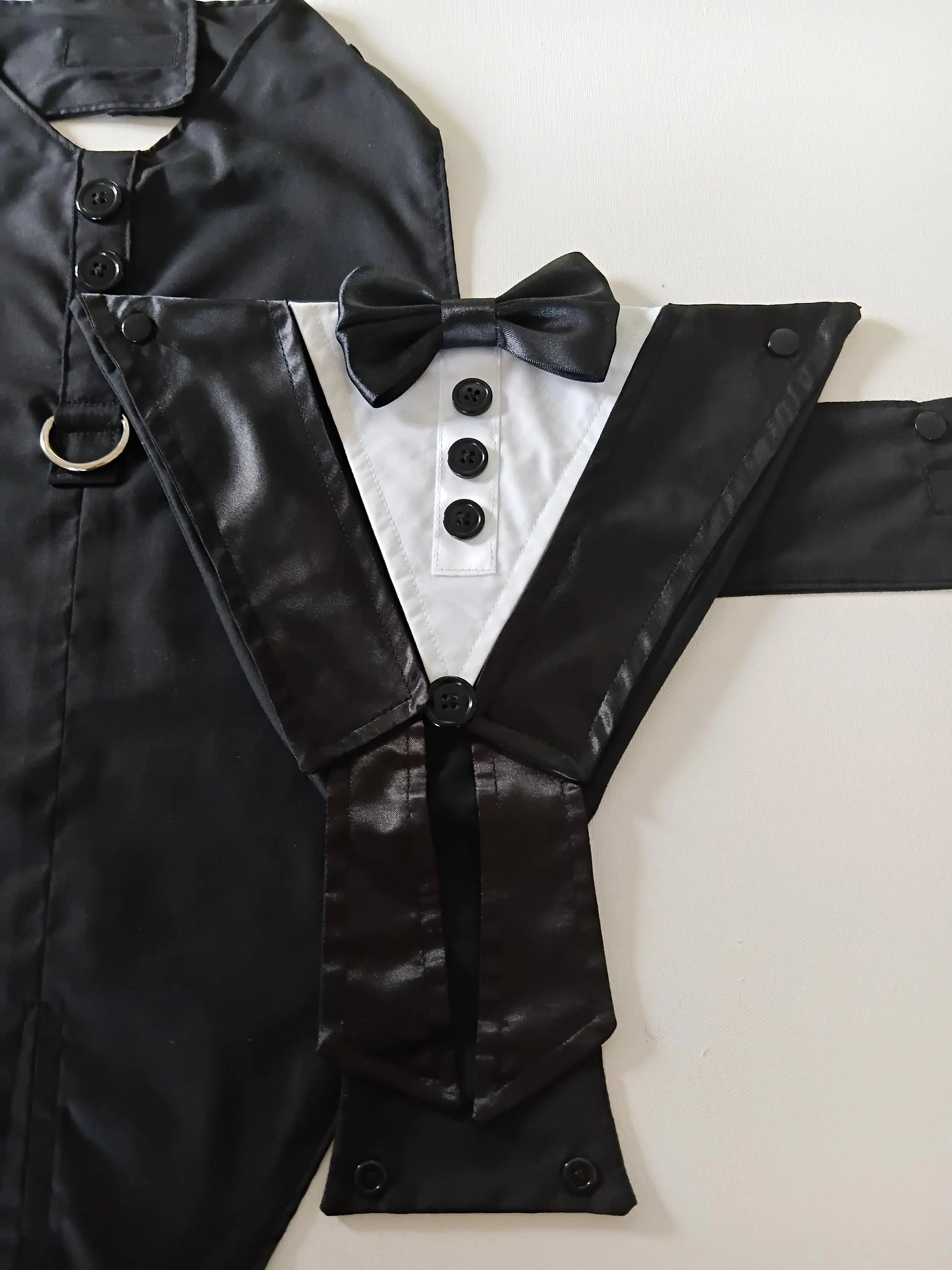 Tuxedo Wedding Dog Harness, Custom Fit with Black Satin Lapels, All Sizes