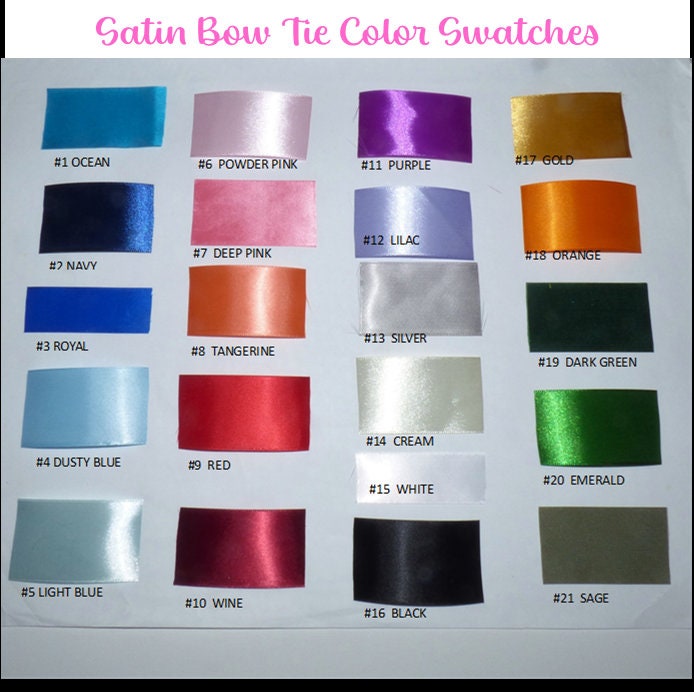 Bowtie is extra wide double-sided satin and finished size is 4.5 in long x 3 in wide. (See photo SWATCHES for other bowtie colours) or request a colour to suit your theme. No extra charge for bow tie colours requested.